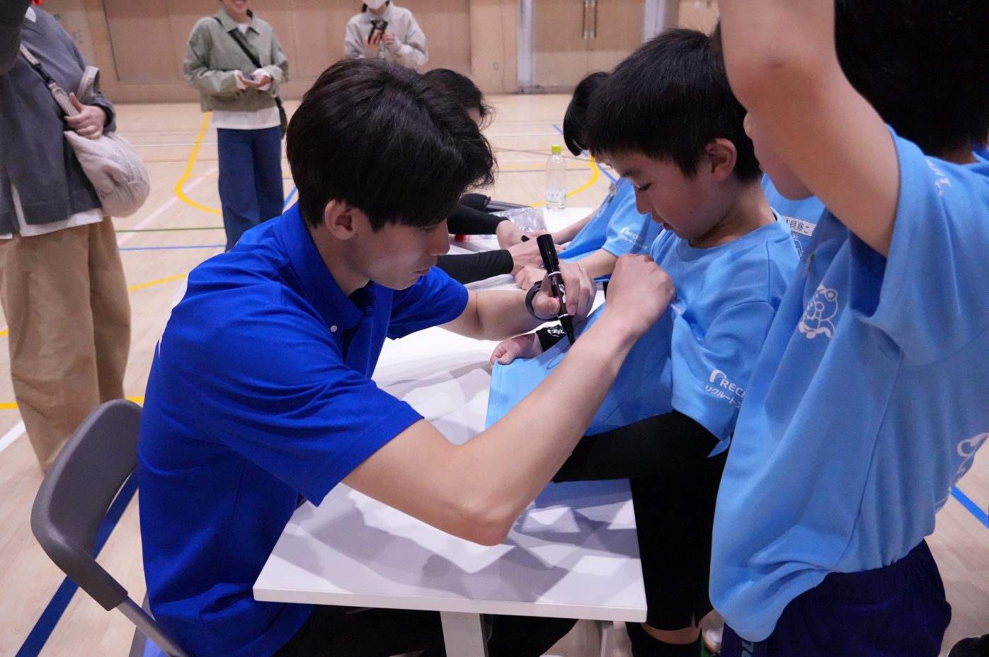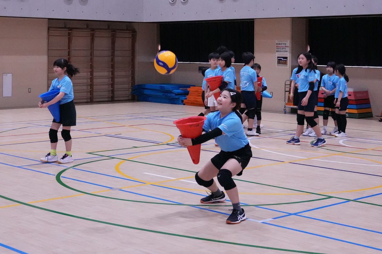 福山さんからはオーバーパスの時の指の使い方や、レシーブの構えから、逆さに持った三角コーンの中にボールを入れることで、「ボールの落下地点を探す」サーブレシーブの練習方法などを教わりました!