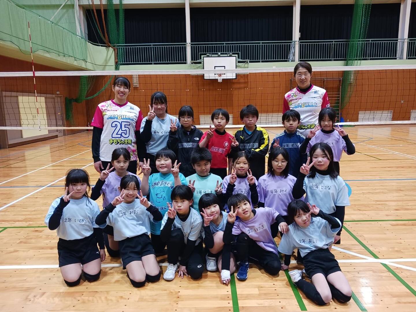 3月4日(水)、岡野亜依(アイ)選手と 神田千絵スクールコーチが、成羽ジュニアバレーボールスポーツ少年団 に行ってきました。