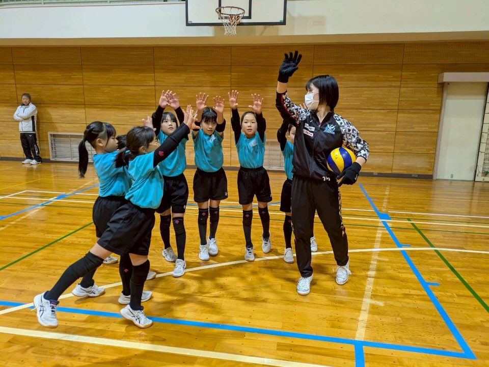12月22日(月)に、岡野亜依 選手と 新名優花 選手と 神田千絵スクールコーチ が 藤田バレーボールスポーツ少年団 に行ってきました。