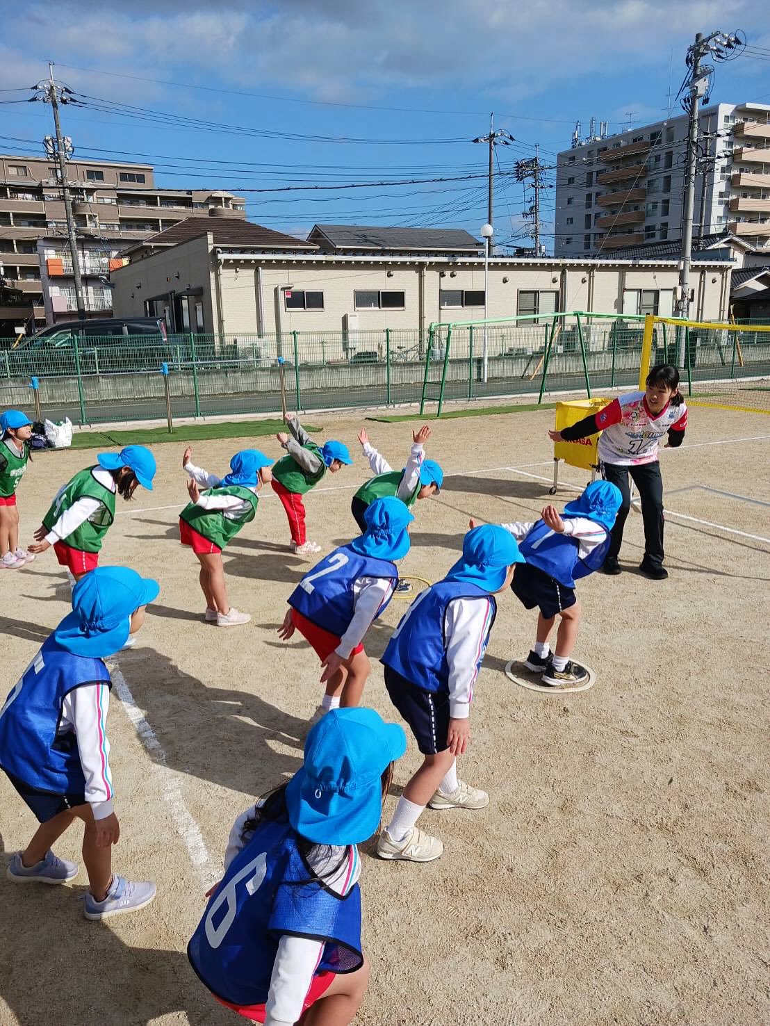5・6歳児さん32名が初めてのバレーボールに挑戦しました。