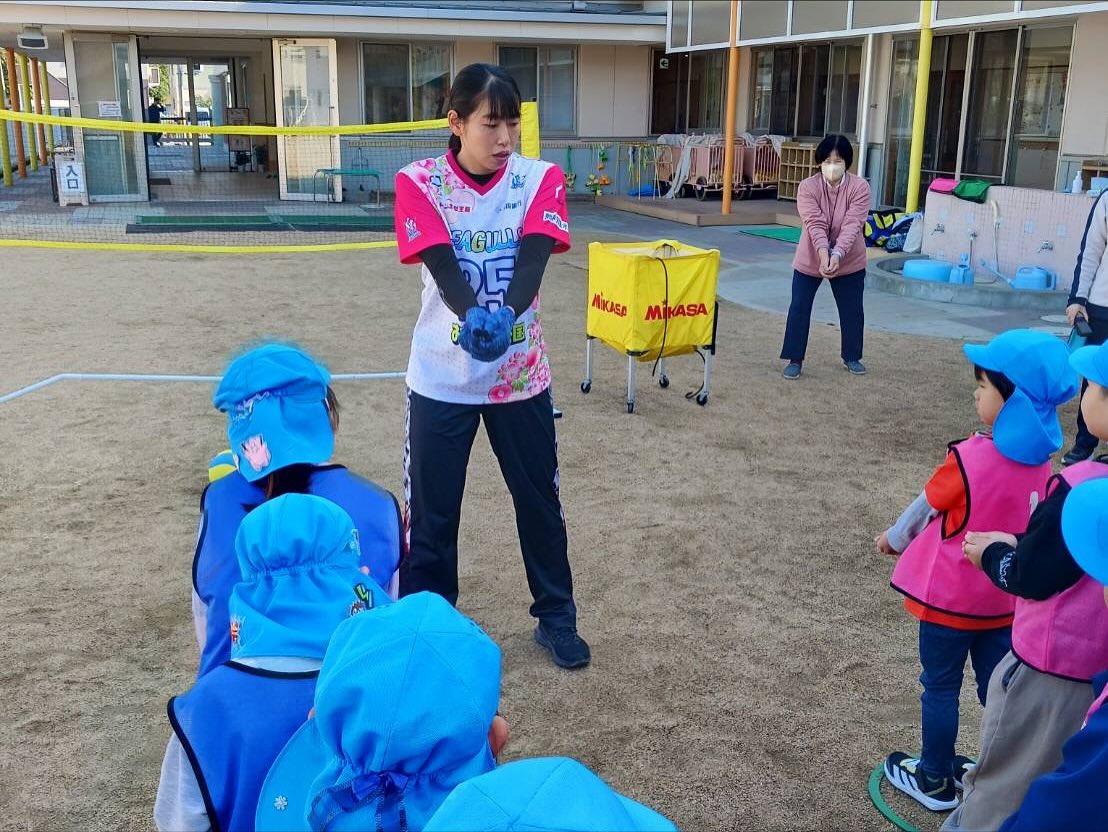 11月7日(金)、岡野亜依 選手と 神田千絵スクールコーチ が、江西桜こども園(岡山市)に行ってきました。