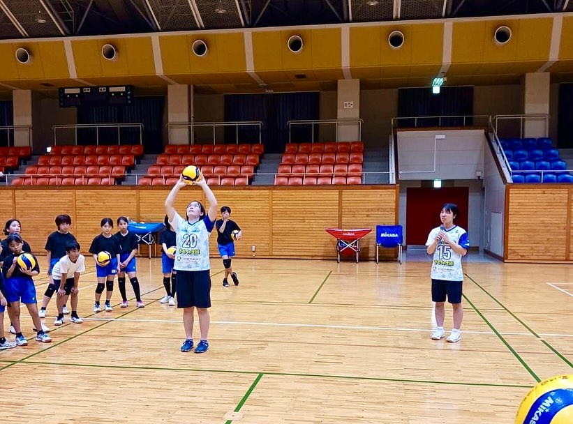 8月28日(木)、岡野亜依選手、佐伯亜魅加選手、藤原絢奈選手、新名優花選手、伊藤悠利コーチ、神田千絵スクールコーチが、玉野市総合体育館(レクレセンター)で指導をしてきました。