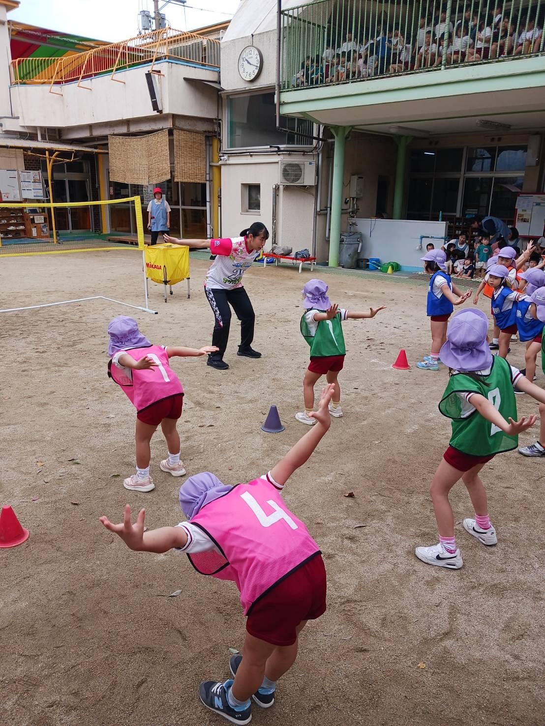 私達が園庭で準備をしている時から「岡山シーガルズの選手とコーチが来た~!」...