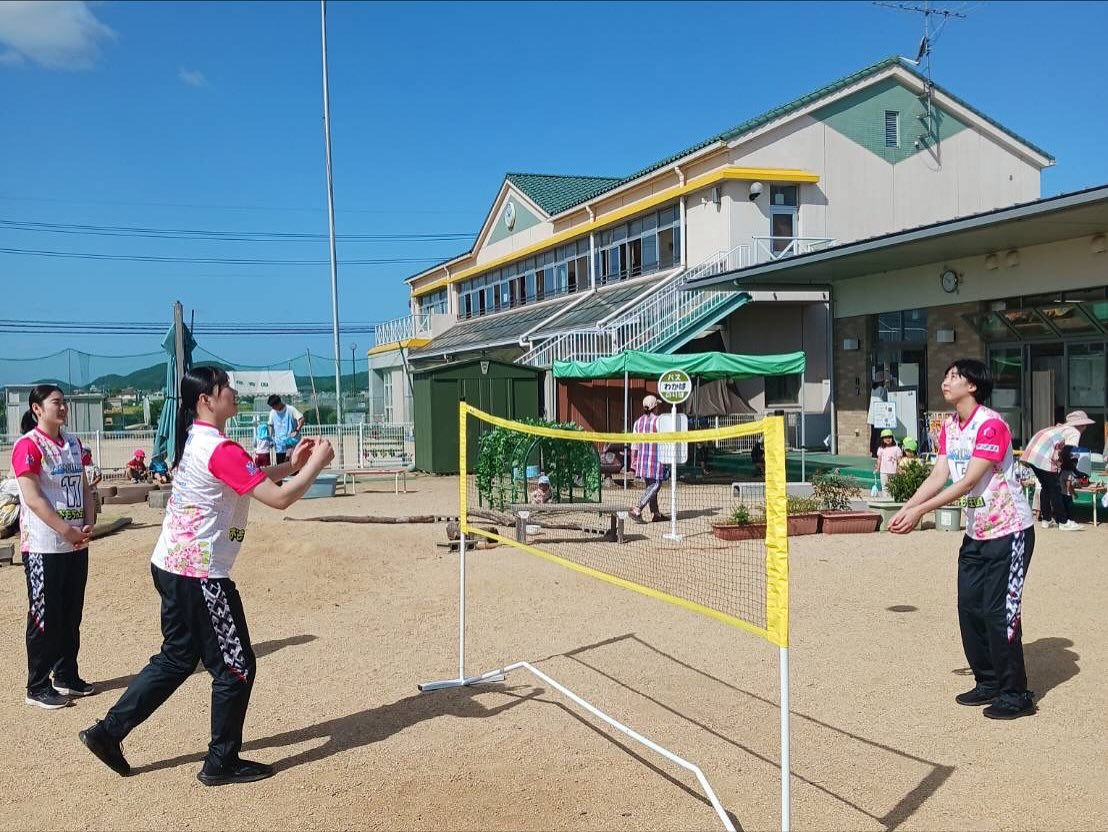 栗栖明歩 選手、城戸うらん 選手、佐伯亜魅加 選手、神田千絵スクールコーチ が、社会福祉法人岡山幸風会竜之口わかばこども園(岡山市)に行ってきました。