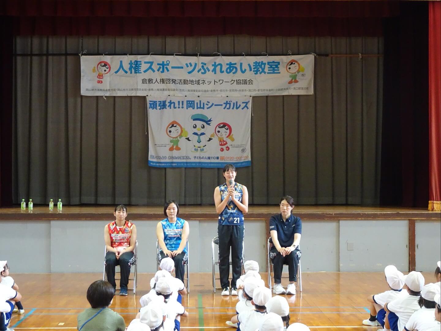 岡野亜依 選手、藤原絢奈 選手、中井心音 選手、神田千絵スクールコーチが、倉敷市立連島西浦小学校 に行ってきました!