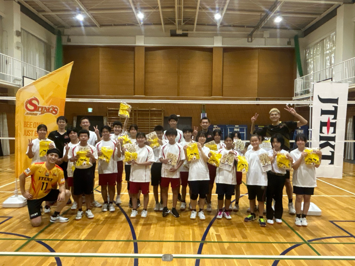 7月8日(火)愛知県立岡崎聾学校のバレーボール部に、STINGS愛知から髙橋健太郎選手、秦耕介選手、豊田昇平アシスタントコーチ、OBの浅野博亮氏が講師として訪問し、競技指導を行いました。