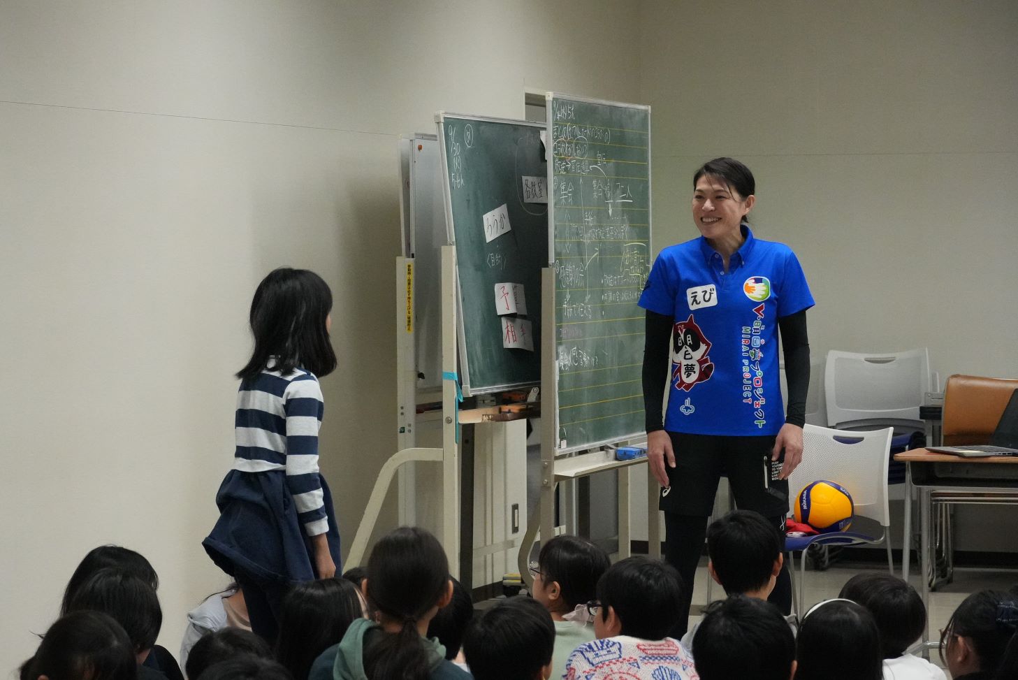 バレーボールは優しいパスを渡すことが大切ですが、皆さんパスもそうでしたし、ゲームの時に相手チームに「がんばれ!」と応援している姿もあるなど、優しい気持ちがあふれていました!また講演の最後はたくさんの人が手を挙げて質問や感想を言ってくれたのですが、「オリンピックに出たいです」や「夢に向かってがんばります」といった前向きな言葉がありました。皆さんの夢や目標を応援しています!!