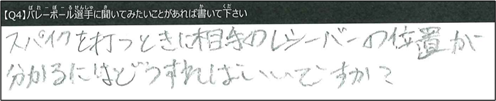 小学6年生:すごく楽しかったです。ありささんのようなスパイクを自分も打てるようになりたいと思いました。