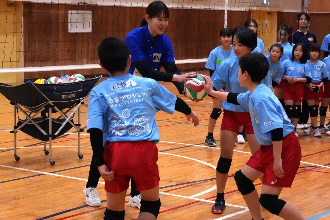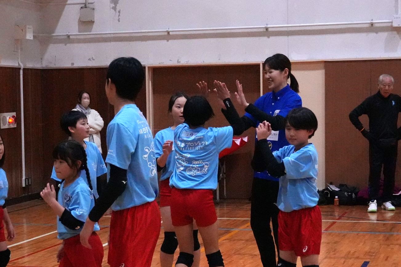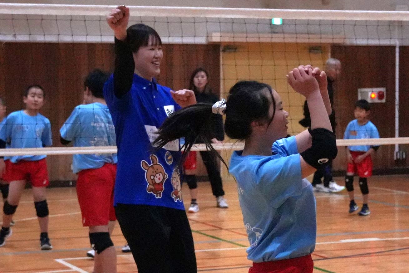 参加していただいた皆さん、ありがとうございました。明るく元気なチームで、バレーボールに一生懸命取り組む姿勢が素敵でした。ボールに向かっていく姿や話を聞きながら体を動かしてイメージしている姿、"もっと上手くなりたい"という気持ちでたくさんボールに触るみなさんの姿を見て、とても感動しました。これからの成長を楽しみにしています。