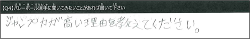 小野さん:今の時点ではたくさんスパイクジャンプをしてください!同じ動作を繰り返すことで筋力もつき、ジャンプ力UPに繋がっていきます!