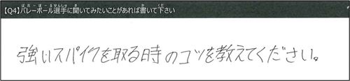 佐藤さん:相手が決めてやる!という気持ちよりも絶対に拾う!!!という、強い気持ちをもつことがわたしは大切だと思います!!!