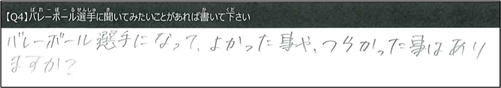 佐藤さん:良かったことは、小さい頃からバレーボールが大好きでバレーボールに向き合ってきて、たくさん勉強をしてきたから引退した今でもバレーボールを通して素敵な経験を続けさせてもらっていること!