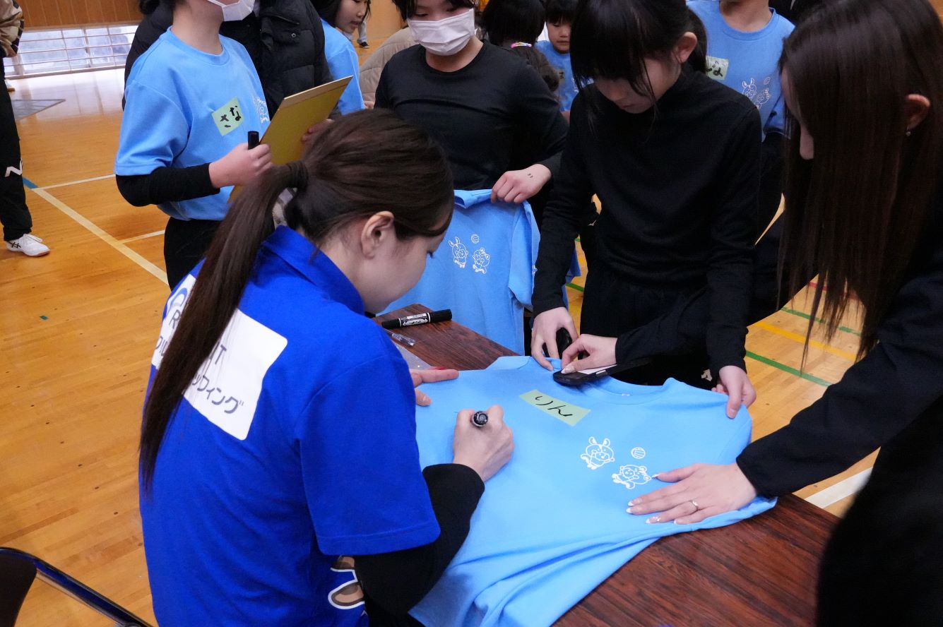 選手同士の仲がとても良く、協力し合う姿がとても素敵だなと感じました!終始、雰囲気良く教室を進めることができたのは選手の皆さんのおかげです!わたしもたのしい時間を過ごすことができました。