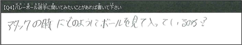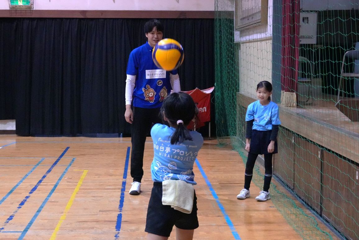 八子さんからはボールを投げるときの腰のひねり方が、スパイクやサーブの動作にもつながっていることや、パスをする時に、ボールだけを見るのではなくパスする相手も同時に見ることが大切。ということを教わりました!