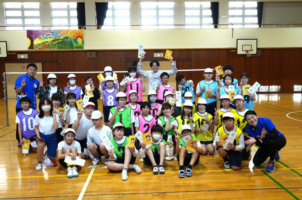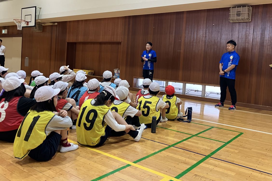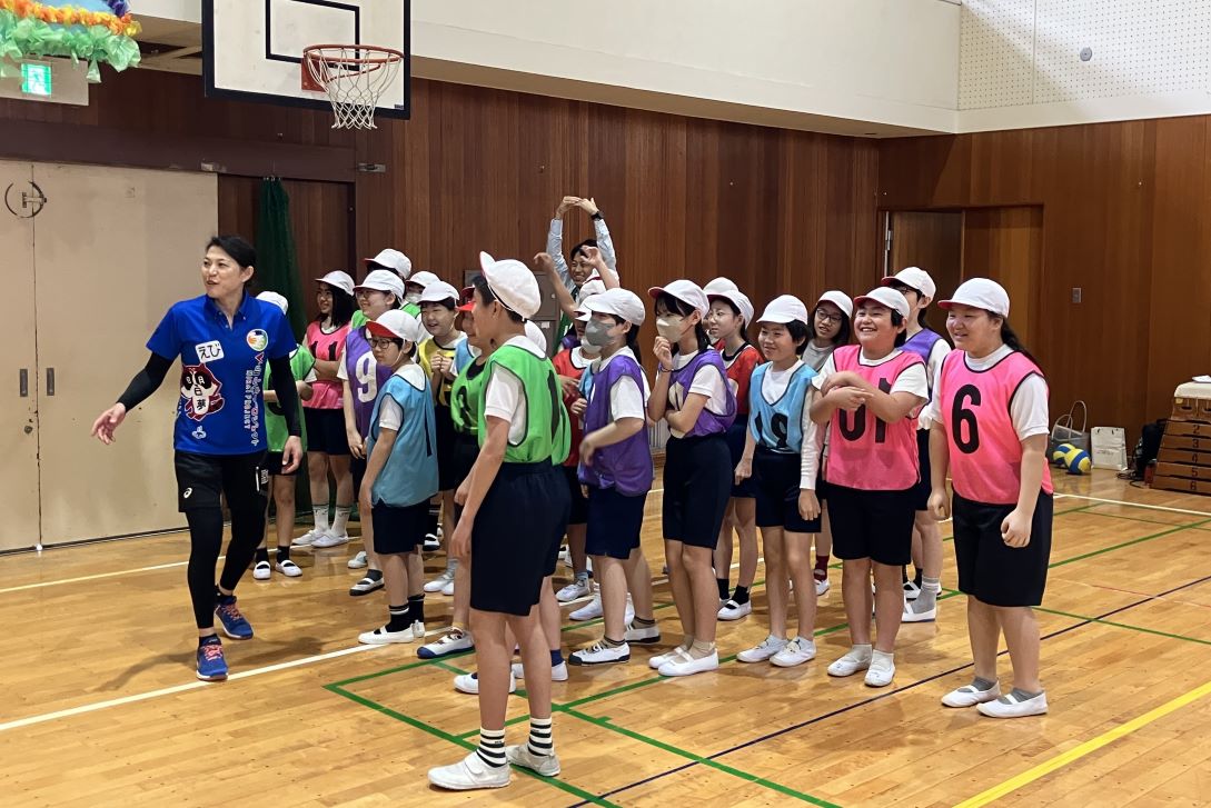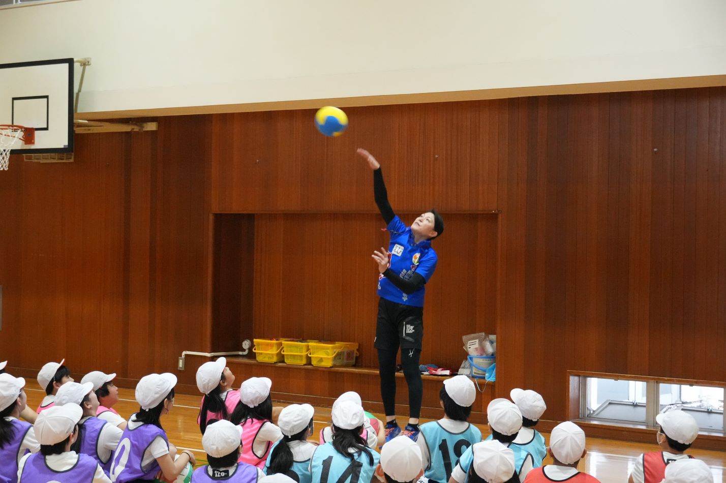 当日はSVリーグからOGの櫻井由香が訪問し、本町小学校の6年生約100名と交流しました。