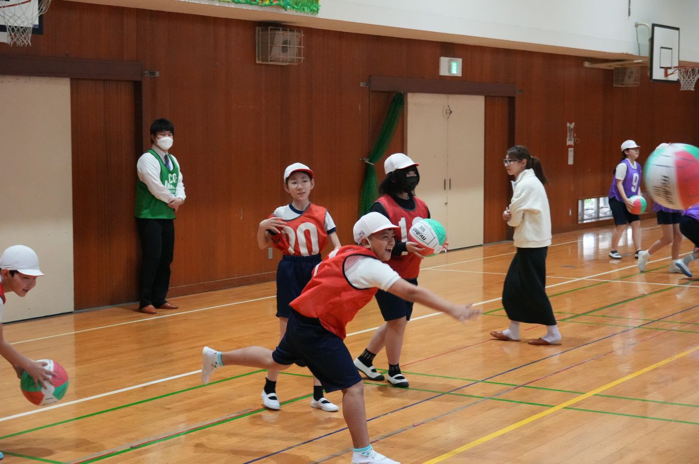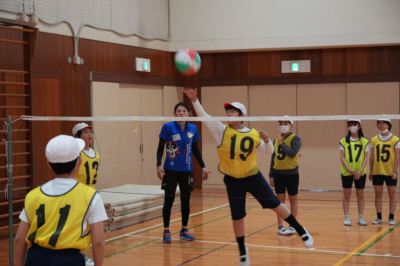 まずはレシーブやトスの動作でボールになれることからスタート。その後、チームに分かれて円陣パスやアタックの練習を経てチーム対抗ミニゲームで盛り上がりました。